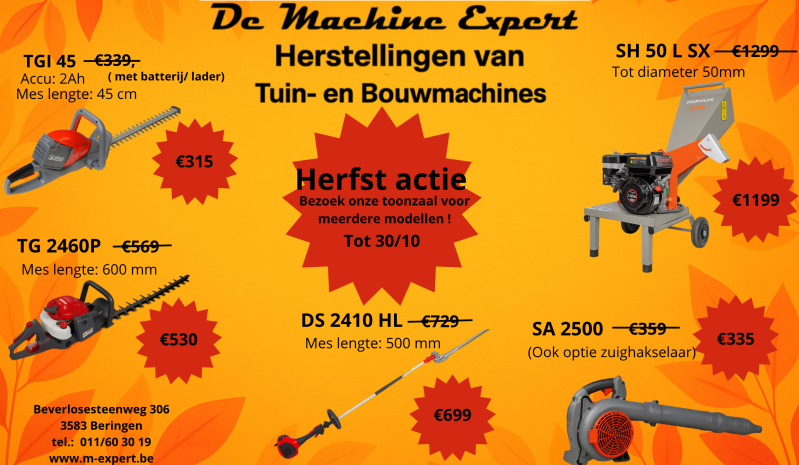 De Machine Expert is leverancier van tuinmachines mét een goede naservice in Limburg, België. Wij streven naar het leveren van topkwaliteit producten en uitstekende service aan al onze klanten. Met onze ruime ervaring en expertise kunnen wij u voorzien van het beste advies en de juiste tuinmachine voor uw klus.