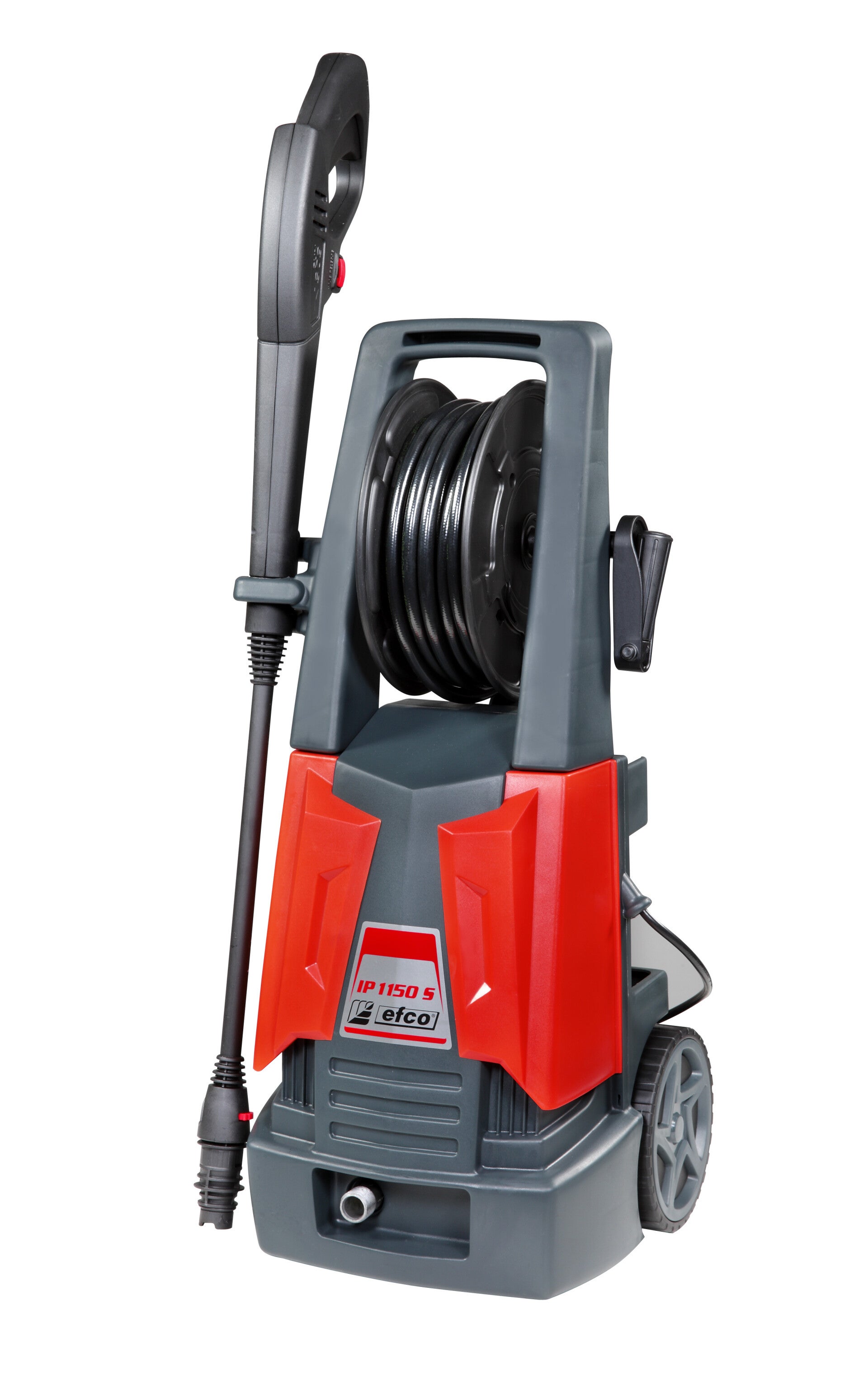 | Standaarduitrusting | Pistool met bescherming, lans met sproeikopbevestiging, verstelbare sproeikop, roterende sproeikop, reinigingsmiddelsproeikop, slanghaspel, 8 m thermoplastische slang, geïntegreerde reinigingsmiddeltank, vaste waterborstel |